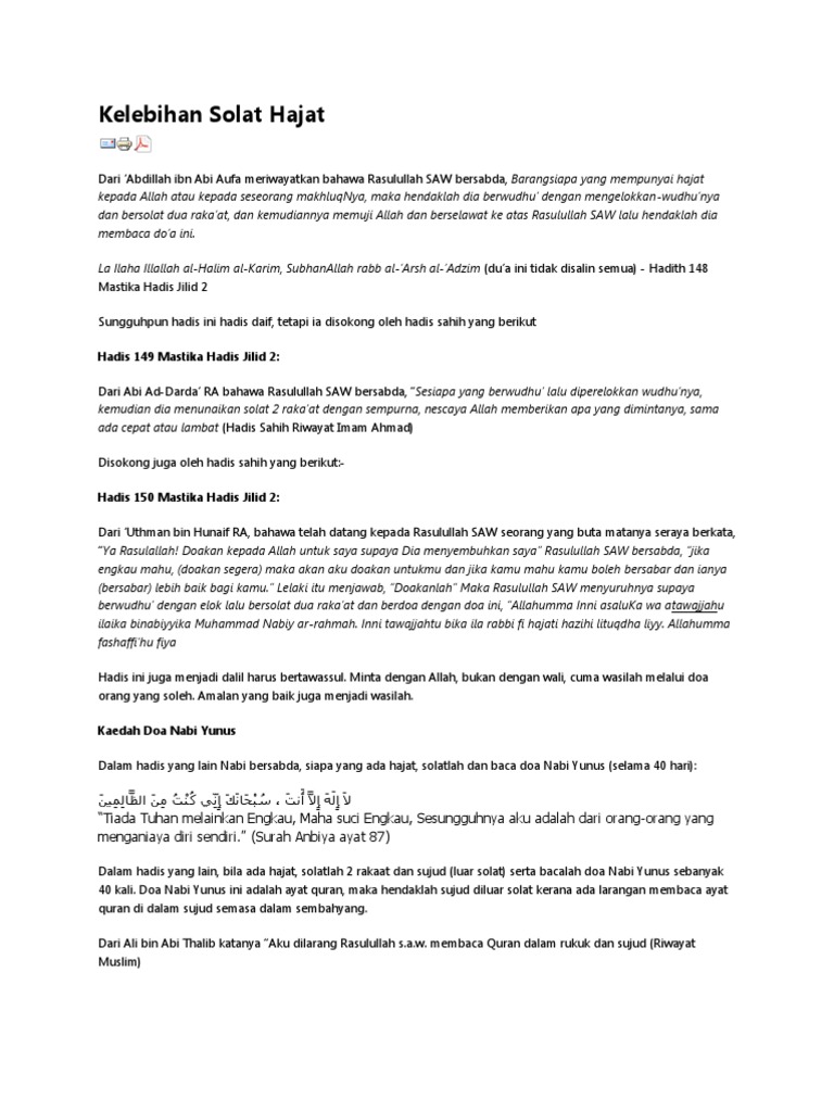 1 Lafaz dan niat solat sunat hajat. FADILATKELEBIHAN SOLAT SUNAT HAJAT - Mendekatkan seseorang hamba kepada Allah - Mengukuhkan keimanan terhadap sifat Allah yg Maha Mendengar Maha. Sholat hajat memiliki beberapa keutamaan.